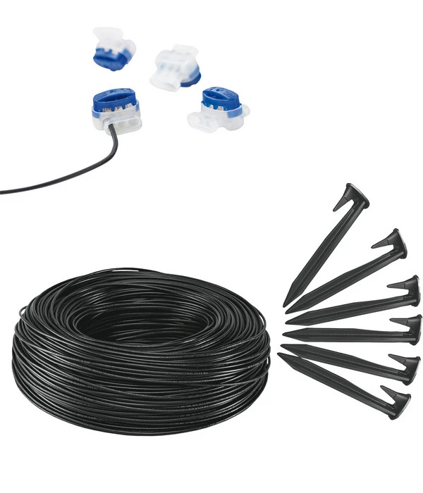 Sie haben sich einen Mähroboter von AL-KO zugelegt und möchten die zu mähende Rasenfläche eingrenzen? Mit dem AL-KO Verlegeset für Mähroboter können Sie die Flächen, die Ihr Mähroboter bearbeiten soll, individuell definieren und schnell und unkompliziert eingrenzen. Das Set enthält einen langen Schleifendraht für eine große Reichweite bzw. ein vollflächiges Mäh-Areal. Zusätzlich sind etliche Bodennägel im Lieferumfang enthalten, um den Schleifendraht sicher und stabil im Boden zu befestigen. So kann der Mähroboter auch auf größeren Flächen und unebenen Terrain akkurat arbeiten. Sie werden von dem präzisen Ergebnis ihres Mähroboters begeistert sein!