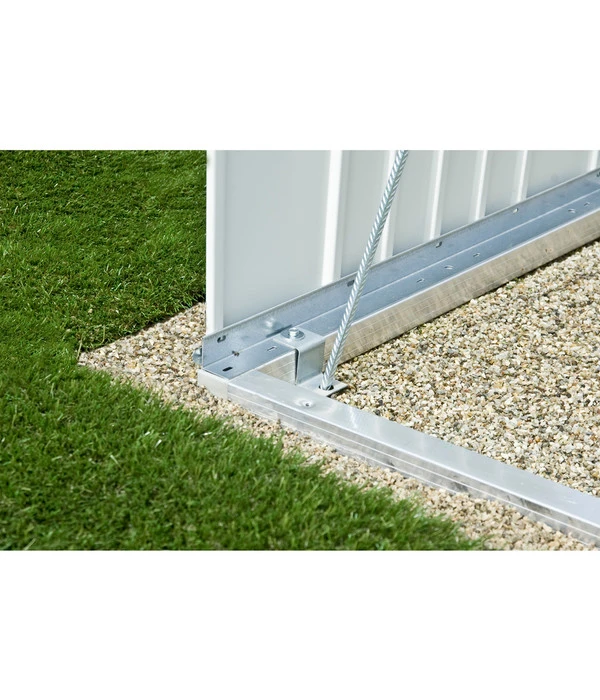 Der Bodenrahmen HighLine® der Firma Biohort ergänzt das Gerätehaus HighLine® und sorgt für zusätzliche Stabilität. Auch unebene Flächen im Garten sind damit kein Hindernis. Die Leisten aus robustem Aluminium verleihen dem Gerätehaus das Bestmaß an Stabilität. Um die eingelagerten Gartengeräte und andere Utensilien für den Garten vor Sturm und Regen zu schützen, sind Bodenanker aus Metall im Lieferumfang enthalten. Ohne dass Sie ein Betonfundament benötigen, bekommt Ihr Gerätehaus die nötige Stabilität – und das blitzschnell.