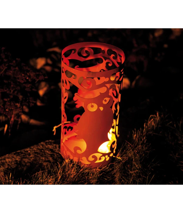 Wenn Sie auch nicht genug von gemütlichem Kerzenschein bekommen können, dann ist das Ferrum Rost-Windlicht Eule wie für Sie gemacht! Es eignet sich sowohl für den Innen- als auch für den Außenbereich und zaubert im Handumdrehen wunderschöne Lichtspiele. Durch seine großzügigen Maße können Sie problemlos verschiedene Kerzenvarianten verwenden und dank der vielen hübschen Details beeindruckt das Windlicht garantiert auch Ihren Besuch. Probieren Sie es doch gleich aus und bestellen Sie sich Ihr eigenes originelles Exemplar!