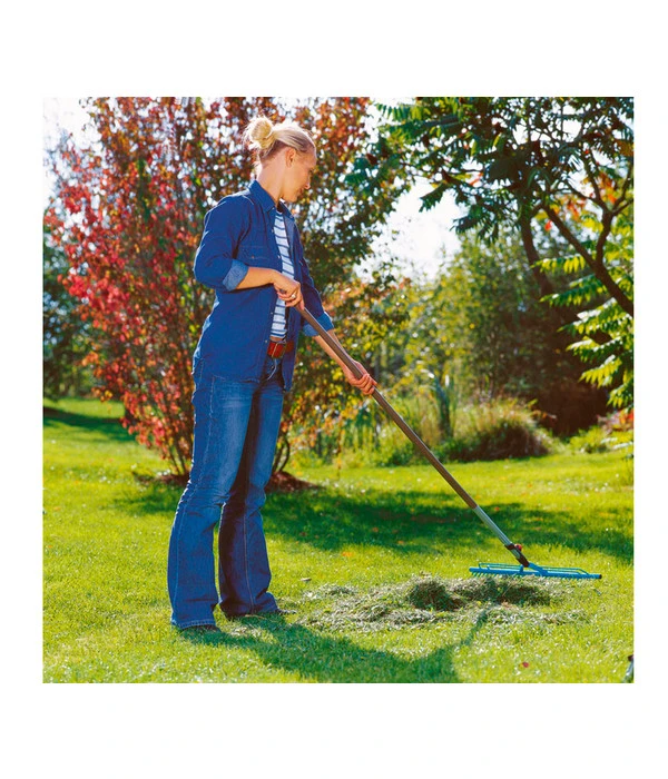 Der GARDENA combisystem Rasenrechen besitzt eine Arbeitsbreite von 60 cm und ermöglicht ein schnelles und effektives Arbeiten. Dank des combisystems von GARDENA lässt sich der Rechen mit vielen verschiedenen Stielen kombinieren. So haben Sie die Auswahl zwischen unterschiedlichen Materialien und Formen. Außerdem können Sie die Stiellänge auf Ihre Körpergröße abstimmen. Das Verbinden von Stiel und Rechen funktioniert kinderleicht: Stecken Sie die beiden Teile einfach zusammen und schrauben Sie den GARDENA combisystem Rasenrechen fest. Anschließend halten die beiden Teile fest und wackelfrei zusammen.