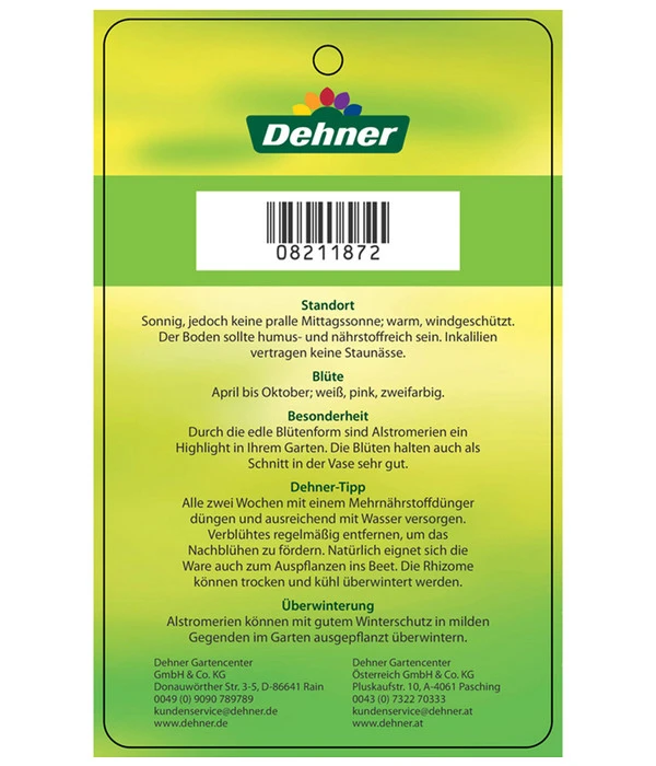 Die sonnenverwöhnte Inkalilie möchte auch bei Ihnen einen möglichst hellen, sonnigen windgeschützten Platz bekommen, um Sie mit einem lang andauernden Blütenflor zu erfreuen. Der Boden sollte nährstoffreich und locker sein. Gießen Sie die mehrjährige Pflanze im Sommer reichlich, im Winter weniger. Aber Vorsicht: Staunässe wird nicht toleriert! Inkalilien sind nicht frostfest und müssen bei sinkenden Temperaturen ins Winterquartier umziehen. Dieses sollte hell und nicht kälter als 10°C sein.