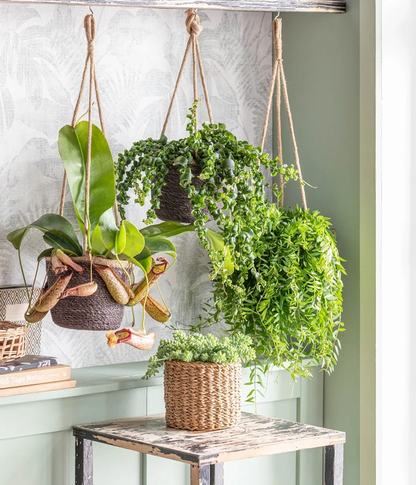 Ihnen gefällt diese Kannenpflanze mit ihren großen, überhängenden Kannen sehr gut, aber finden einfach nicht den richtigen Platz für diese Pflanze? Kein Problem, sie müssen dieses Gefäß nicht unbedingt ins Fenster hängen. Probieren Sie es mit einer großen Vase oder einem Keramikgefäß. Auch auf höheren Möbelstücken kommen die vielen, langen Kannen optimal zur Geltung und auch dort bleibt sie ein treuer und natürlicher Fliegenfänger für Ihre Wohnung.