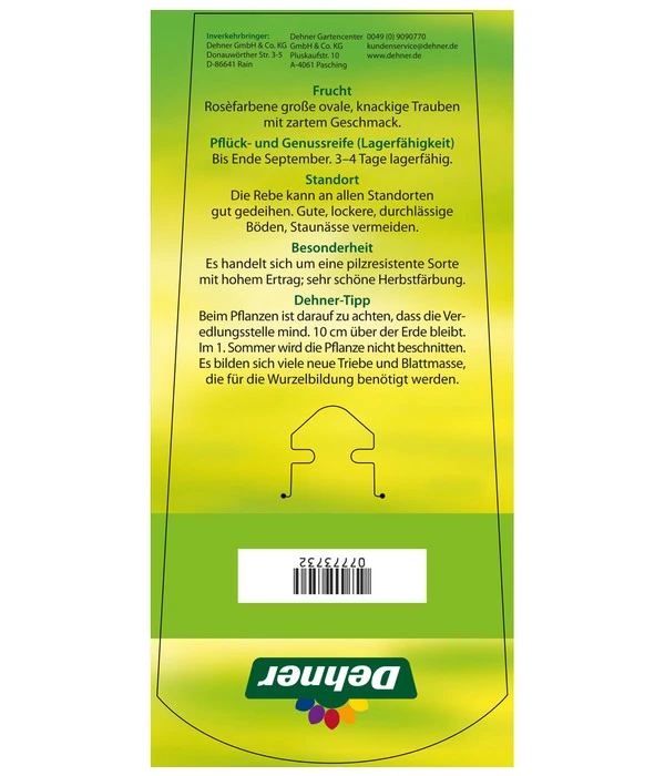 Die Sorte ‚Vanessa‘ ist etwas ganz besonderes unter den Trauben. Sie überzeugt vor allem durch ihre leckeren Weinbeeren. Diese sind kugelrund, groß und hängen an mittellangen Trauben. Die Früchte fallen vor allem durch ihre Kernlosigkeit auf und können so auch Kinder von sich überzeugen. Die Früchte sind sehr süß und fruchtig. Durch ihren süßen Geschmack benötigen sie bei der Verarbeitung keine zusätzlichen Zuckergaben und sind so bestens als Diätbegleiter geeignet. Eine weitere Besonderheit ist ihre Farbe: Sind sind in einem Roséton gehalten, was sehr selten ist. Die Pflanze wächst sehr stark, wodurch sie in kürzester Zeit Zäune oder Spaliere begrünen kann. Die aus Kanada stammende Tafeltraube ist außerdem resistent gegen Pilzkrankheiten und gut frostfest. Sie bringt Ihnen bei richtiger Pflege gleichmäßige und hohe Erträge.