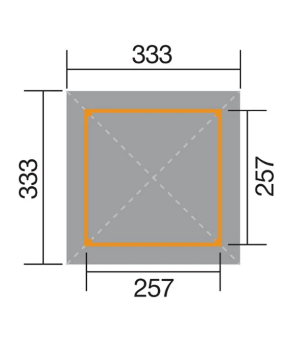 Dachüberstände: Seiten je ca. 38 cm, vorne und hinten 38 cm