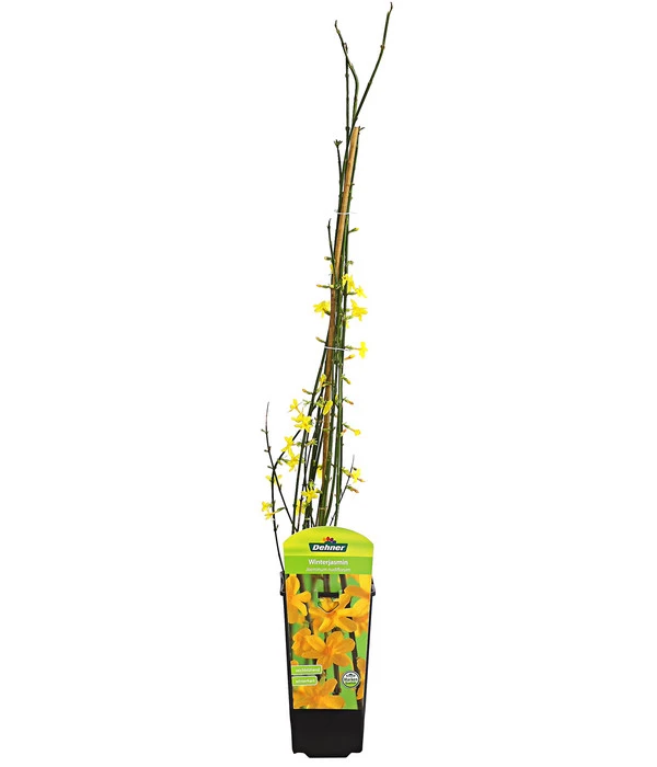 Wenn sich ein Ziergehölz mit eine Fülle kleiner, leuchtend gelber Blüten schmückt, ist dieser Anblick zu jeder Jahreszeit eine Bereicherung für den Garten. Spielt sich dieses Schauspiel aber im zeitigen Frühjahr ab, wenn alle anderen Pflanzen noch im Winterschlaf liegen, ist der Zierwert für den Garten einmalig. Der Winter-Jasmin ist einer der schönsten Winterblüher, der Farbe in den winterlichen Garten bringt. Je nach Witterung öffnet er seine gelben Blüten schon vor Weihnachten, bei sehr kalten Temperaturen wartet er bis Februar/März und behält seine Blüten dann bis in den April. Von weitem ähneln die Blüten einer Forsythie, was zu verwunderten Blicken Ihrer Nachbarn führen kann, deren Forsythie zu diesem Zeitpunkt noch keineswegs in Blühlaune ist. Winter-Jasmin ist ein immergrüner Spreizklimmer mit überhängendem Wuchs, der je nach Lage bodendeckend oder aufrecht und rankend wächst und eine Höhe/Länge von 2 – 3 m erreichen kann.